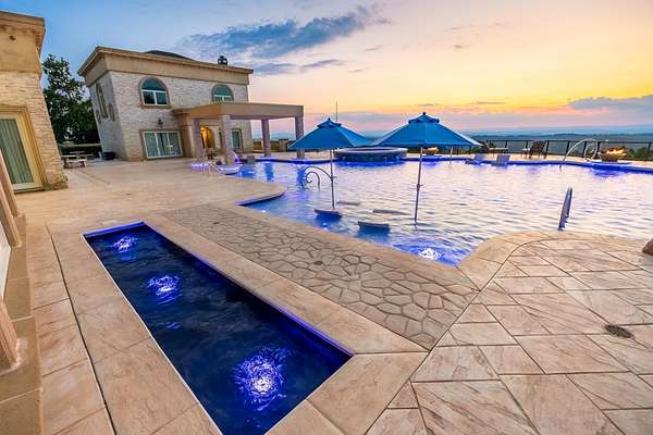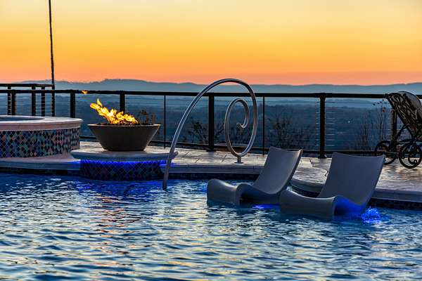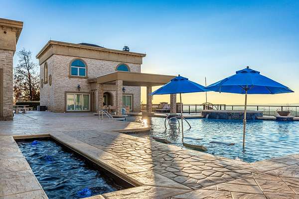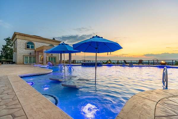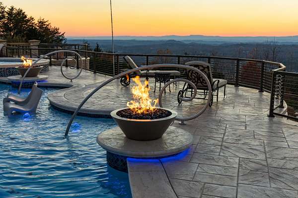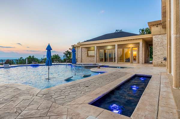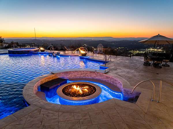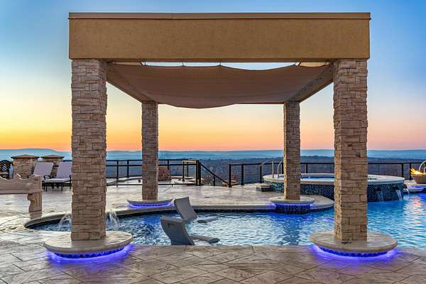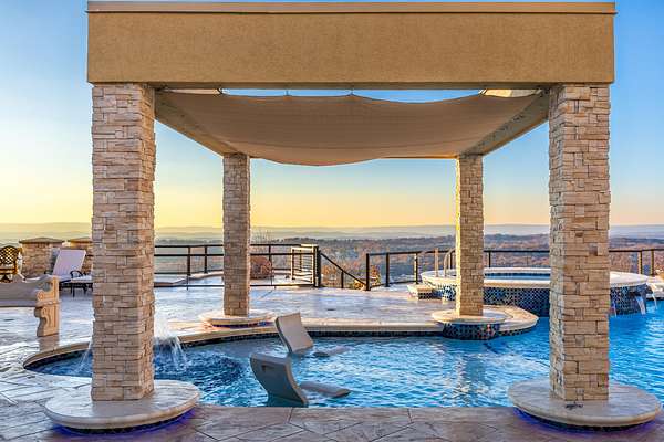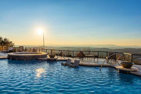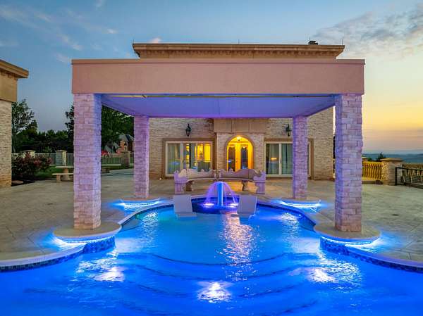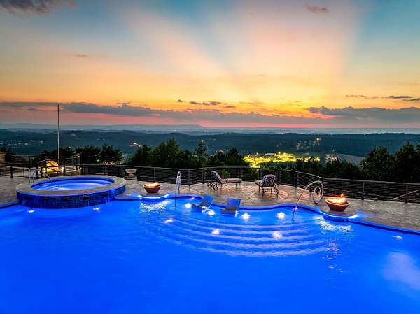 ''The Windy Hill Estate''. Prime Ooltewah, TN location. Gated privacy. Breathtaking views. ''Heavenly Views'' A rare find to say the least. Endless southeastern views of ''The Horizons,'' and/or southwestern views Lookout Mountain and city lights. Eleven acres at the top of White Oak Mountain, at the end of a cul-de-sac street. This luxurious estate features elegance and comfort (built like a fortress). Quality custom built featuring the finest craftmanship of stone throughout the estate (inside and outside). Main house consists of 8800 Sq Ft. 5 bedrooms, 5.5 baths. Luxurious master suite and luxurious master bath with his and hers walk in closets all on the main level. Soaring high ceilings throughout. Beautiful and/or elegant marble staircase thereby showcasing a grand chandelier. Elegant 2 story foyer. Elevator. Open floor plan features a piano bar that includes a wet bar, dishwasher, and ice maker. Separate dining room, family room, separate sitting room (living room), custom butler's pantry which features a dishwasher, ice maker, and sink. Breakfast room that features a Scenic City view. Second level foyer overlooking the grand marble stone staircase, along with the front entry foyer and at the same capturing eastern and western view. 5th bedroom is currently customized as an office with custom built-in cabinetry. All bedrooms feature full bathrooms. Custom, gourmet kitchen includes a Thermador gas cook top with warming shelves, Thermador double (wall) ovens and side by side built-in Sub-Zero refrigerator and freezer. Island with second sink and Kitchen Aid dishwasher. Main house features side rear entry attached 3 car garage. Large laundry room with sink, custom cabinets, built-ins, and pull-outs galore. Plantation shutters throughout. Custom trey ceilings throughout. House consist of Pella Windows and Doors. Lush landscaping with water fountains, flower beds, and retaining walls. The overall layout and/or presentation is simply elegant. The separate guest house consists of 2400 Sq Ft, 2 bedrooms, 2.5 baths, which includes panoramic views. The grand design outdoor entertainment area has too many features to mention in doing the subject justice. Multi-level pool side features are nothing less than spectacular. The grandeur display of quality and custom marble features is breathtaking. The pool and pool house features are all new and/or under construction and near completion. Pool side entertainment features are incredible: Unite (with pebble tech) heated pool and hot tub. Pool features zero entry and tanning deck 1 & 2. Two badu jets. Swim up bar to fire pit with custom sunken seating. 2 accent fire bowls flanking the pool side. Poolside basketball goal. Custom Mushroom foundation. Pool house/outdoor kitchen equipped with state-of-the-art appliances, allowing you to entertain guests with gourmet meals. All sports court includes basketball and pickle ball courts overlooking the western brow with scenic city view. The pool house features a theater room, a wine cellar room, and a full bathroom along with a gourmet kitchen and grilling with open air full retracting sliding doors to the pool, thereby capturing the scenic city, brow front views. Perfect for hosting poolside parties and enjoying a vibrant outdoor atmosphere. Providing endless entertainment options for you and your guests within this luxurious back yard oasis. All of the water features create a soothing ambiance. LED lighting creates an enchanting nighttime pool atmosphere with fire bowls, mushroom fountains, and waterfall via an integrated hot tub along with many customized features, all overlooking breathtaking views, yet with seclusion and tranquility. A private retreat with resort inspired luxuries.