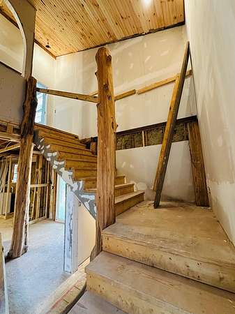 ATTENTION builders, contractors, investors, or someone who loves a project! Welcome to 2362 Silver Maple Road, which sits on a secluded and peaceful 9 acres, on a quiet country road. If you have a vision, this property is for you. Walk in to the open concept living room and kitchen area, where you will see beautiful cedar posts all around the home that came from the property itself. With nearly 3,000sqft, you get 5 spacious bedrooms, and 3 full bathrooms. The primary bedroom features tall ceilings, an en-suite with a walk-in shower, HUGE closet, and its own entrance that leads directly outside. An additional bedroom or potential office is downstairs, with its own full bathroom as well. On the second floor you will find three bedrooms and a full bathroom. The house has a very large covered porch that partially wraps around the house. The electric and plumbing are already installed. This house has the bones, potential and space to be something BEAUTIFUL. It is an AS-IS sale. It is located back off of the road and has plenty of room for any additional storage buildings, shops, equipment or toys.