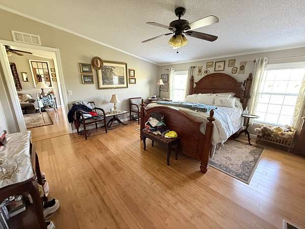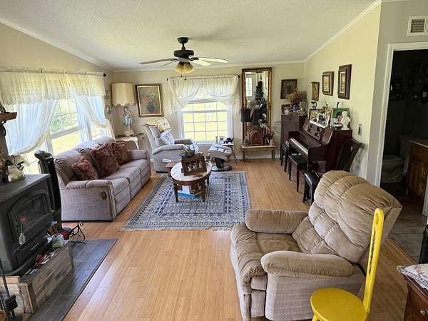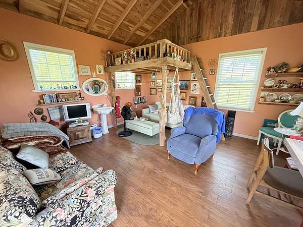 This peaceful dream home is 15 minutes from I24. The 5+ acers are ready for small hobby farm or bring the animals. Land like this is getting harder to find. This home is comfortable and spacious. All rooms are large and open with several walk-in closets, large walk-in pantry. Extra-large front and rear decks. Tiny home on property ready for guests, private office or small business. Beautiful bamboo hardwood throughout and ceramic tile in wet areas. Lots of windows and living room with wood burning stove. Large 15’ by 30’ Great room for family or entertaining. Several barns and sheds for all the toys and Equipment have water and electric. Home inspections welcome, home is move in ready and well maintained, seller is retired and would like to sell the home as shown. All electric is run underground.30 x 30' Attached 900sq ft Garage. CUD water at road. Metal roof 4 years old. Blinds remain but curtains do not stay.