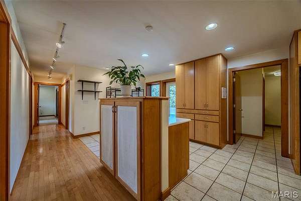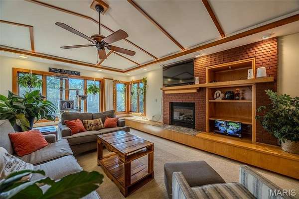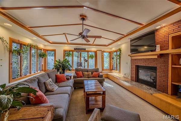 Fabulous Contemporary Retreat in the Missouri Ozarks -- Inspired by Frank Lloyd Wright! Discover this one-of-a-kind contemporary masterpiece nestled on 40 private acres in the heart of the Missouri Ozarks. This custom-built 3 or 4 bedroom, 2.5 bath home is a stunning showcase of craftsmanship, creativity, and connection to nature. Step inside the central foyer, where a dramatic hallway stretches from end to end, illuminated by spectrum lighting that guides you through the home's flowing design. The interior features extensive woodwork, custom built-ins, and beach-toned hardwood floors and cabinetry that add warmth and sophistication. Enjoy serene outdoor living with multiple patios, including one with a brand-new hot tub, and a tranquil koi pond with waterfall -- perfect for relaxing or entertaining. The lower level boasts 10-foot ceilings, three spacious flexible rooms ready to customize to your needs, and a second laundry area with half bath. All of this rests on 40 acres of partially fenced land with a peaceful pond, offering privacy, beauty, and endless possibilities.