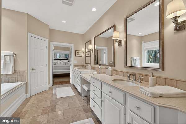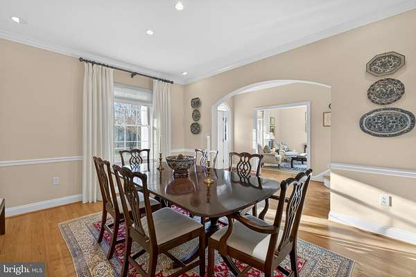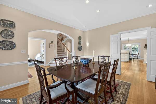 Classic Virginia Piedmont designed home with a wide and welcoming front porch, and dormer windows. Designed with an emphasis on one level living, this pristine 4-bedroom home features a stunning first floor primary suite. Sited high on its 3-acre homesite, the entire home enjoys beautiful natural light, as well as serene and private views. This handsome home is part of the coveted Melmore Community, adjacent to the historic town of Middleburg with its upscale shopping, restaurants, businesses, and hotels. From the wide front porch, one enters the spacious and inviting foyer; it is here where one sees the wonderful openness of this mostly traditional floor plan. To the right is the formal dining room, to the left the elegant living room and straight ahead, the foyer opens into the dramatic family room with wood burning fireplace and vaulted ceiling. The ceiling height, updated statement lighting, as well as the tall windows flanking the fireplace, add to the ambiance. From the family room, pocket French doors open into the sun filled breakfast room and kitchen. Glass doors, in the breakfast room, lead out to the handsome stone terrace beautifully tying the home to its surrounding landscape. This terrace was recently added and is perfect for al fresco dining, relaxing, and entertaining. The breakfast room then leads to the back hallway with exterior entry, powder room, laundry room, and access to the three-car garage. Returning to the breakfast room one then enters the spacious chef's kitchen. Designed for creating beautiful meals and memories, this kitchen features an abundance of workspace with honed granite countertops, custom cabinetry, subzero refrigerator, a gas 5-burner cooktop, double ovens, 2 sinks and dishwasher drawers. A set of doors, between the kitchen and formal dining room, afford privacy from either room. Returning to the foyer, the front hallway leads to the exquisite Primary bedroom suite. This stunning bedroom features a tray ceiling, adding extra height, and new lighting. The elegant bath is spacious and features a double vanity, soaking tub, walk-in shower and private water closet. Adjacent to the bath is the custom designed walk-in closet. Returning to the front hallway, a graceful stairway leads to the second level, which features a second bedroom with private bath, and 2 additional bedrooms, which share a Jack and Jill bath. These bedrooms were recently carpeted with a neutral sisal, perfect for any decor. This level also has walk-in access to the attic storage room. The lower level features a spacious game room with built-in bookcases, a bonus room/office, full bath, and a large storage/mechanical room. The interior of this home was recently painted, and throughout this gracious home the owners have installed handsome and neutral, custom-made window treatments. This home is move-in ready and is equipped for Comcast cable and Xfinity Internet. For car enthusiast, Melmore's community roads are paved and come directly from Route 50; this home features a circular paved driveway which leads to the three-car attached garage. The location of this community provides easy access to Dulles International Airport and Washington, D.C.