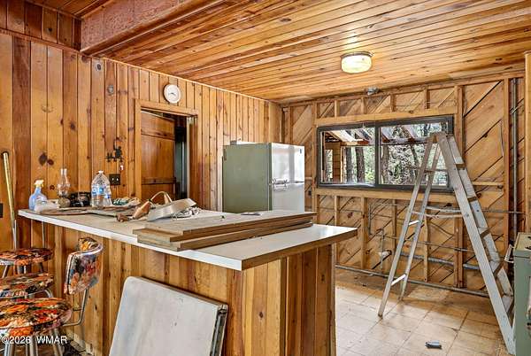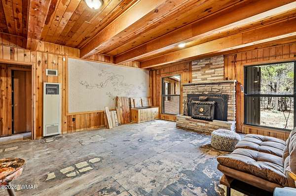 Nestled on +/-1.55 acres of heavily treed land in the heart of Lakeside, this unique property offers a rare chance to create something truly special. Surrounded by towering pines, junipers, and oaks, the setting feels private and peaceful while still being just minutes from town, Rainbow Lake, and everyday conveniences. The home itself is a true fixer opportunity, ready for someone with vision to bring it back to life and make it their own. With two masonry fireplaces already in place, the foundation for a warm and inviting mountain retreat is there, just waiting to be finished. The property features a private well, is fully fenced with a gate at the road, and offers access to sewer, with natural gas available at the property line. There is plenty of space to park RVs, toys, trailers, and more, with room to spread out and even accommodate horses. Whether you're looking to build equity, create a custom retreat, or invest in a prime piece of land in Lakeside, this property offers incredible potential. ***Being sold AS-IS, please refer to associated disclosures in the documents tab for additional details.