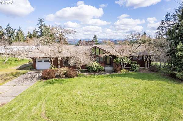 Tranquility awaits you at this Custom Northwest Contemporary home on 25.3 Acres with a captivating view of Mt Rainier! Updated home boasting 2,126 SF finished main level & 1,896 SF unfinished basement, 3 bdrms, 2 bthrms, great room w/vaulted ceiling-brick FP w/insert-wall of view windows, frml living rm w/brick FP & insert, spacious kitchen w/new SS appl-indoor rotisserie-eating bar-pantry, dining rm & family rm w/slider to large deck, utility rm, primary bdrm w/walk-in closet-slider to deck-ensuite/continental bthrm, new LVP flooring and carpeting throughout, heat pump, wood burning furnace & two 1 car garages. The grounds feature a gated entry, dogwood trees, fenced pastures w/natural pond, 2240 SF carport, 1440 SF Barn 640 SF machine shed, 40x60 Pole Building, fruit orchards, blueberry bushes, gardens & approximately 18 acres of forest land with a current timber cruise value of $153,000! Ideal equestrian property or family farm on the desirable Seminary Hill!