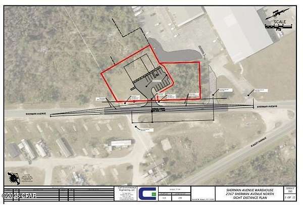Development Opportunity in Panama City FL. High and Dry commercial land that is development-ready with 285+/- ft of frontage on Sherman Ave. No flood zone or wetlands. Partially cleared. Construction and Engineering plan already in place with development order currently under review for a 5,400 SF warehouse/office with office and parking . Commercially zoned property is suitable for multiple commercial uses and may be used for other purposes than the plan described here. Zoned C3-A Commercial. Construction Plan available Upon Request. This includes: Site plan, Grading plan, Utility plan, Stormwater Management plan, Erosion Control, Landscape plan, Construction details and more. Engineering and construction plan is optional but may convey to buyer with offer. Development Plan is currently under review with Bay County. No construction has been started. All information here is believed to be reliable. Buyer should verify all important figures including measurements, property lines, and usage.