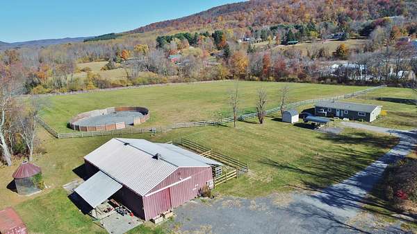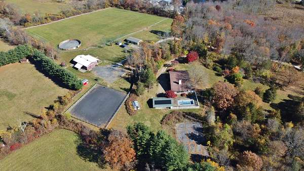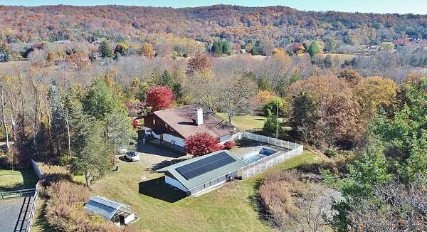 Your own private Yellowstone with a Scandinavian Chalet! Built in 1976 by Frederick Fusie, former CEO of Avon Cosmetics, this secluded 23.4-acre compound is set 7,000 ft from the road with automatic gates for ultimate privacy. Located in the Beekman aquifer, the property's fall foliage evokes Steinbeck landscapes. The 4,605-sf main house on 14.09 acres features 4 bedrooms, 3 baths, a stone fireplace, security system, commercial-grade internet, detached 3-car garage, greenhouse, pool (needs rehab), tennis court (needs resurfacing), and a 25-panel solar array. The second parcel offers rustic equestrian facilities: a 9-stall barn, tack room, feed room, security office, riding ring, two paddocks, and room for more. A 1,056-sf, 3-bed, 1-bath staff house adds convenience. Agricultural exemptions reduce taxes by 80%, totaling $9,470 in 2024. A rare opportunity to own a private, versatile property. Seller is motivated; submit all reasonable offers!