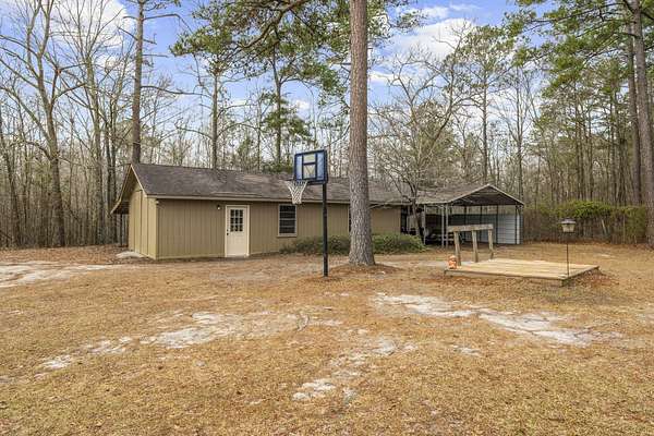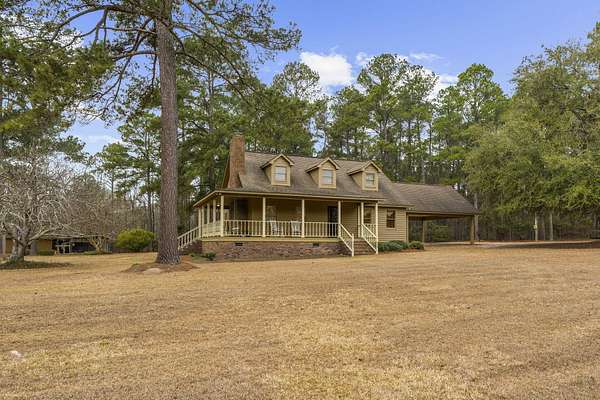 Country living at its finest! Nestled on over 7 private acres in the countryside of Orangeburg, this beautifully maintained 4-bedroom, 3-bath home offers the perfect blend of space, character, and functionality.Inside, you'll find a spacious living area with exposed wood beams, a brick fireplace, and custom built-ins, creating a warm and inviting place to gather. The home features oak wood flooring, generously sized rooms, and a well-appointed kitchen with ample cabinetry and bar seating, perfect for everyday living and entertaining.The primary suite features stunning vaulted wood ceilings, adding rustic charm and character. Multiple living spaces and large bedrooms provide flexibility for family, guests, or home office needs.front porch with wraparound section, ideal for relaxing mornings or evening sunsets. From the porch, you can often spot local wildlife such as deer, wild turkey, and a variety of birds roaming the property. The property is equipped for both hobbies and storage with a 20' x 40' workshop/shed with lean-to as well as a covered RV/boat storage structure, providing plenty of room for equipment, recreational vehicles, or projects. With over 7 acres of land, mature trees, and plenty of open space, this property offers privacy and room to roam while still being convenient to town. If you're looking for quiet country living with space, character, and room for all your toys, this property is a must-see.