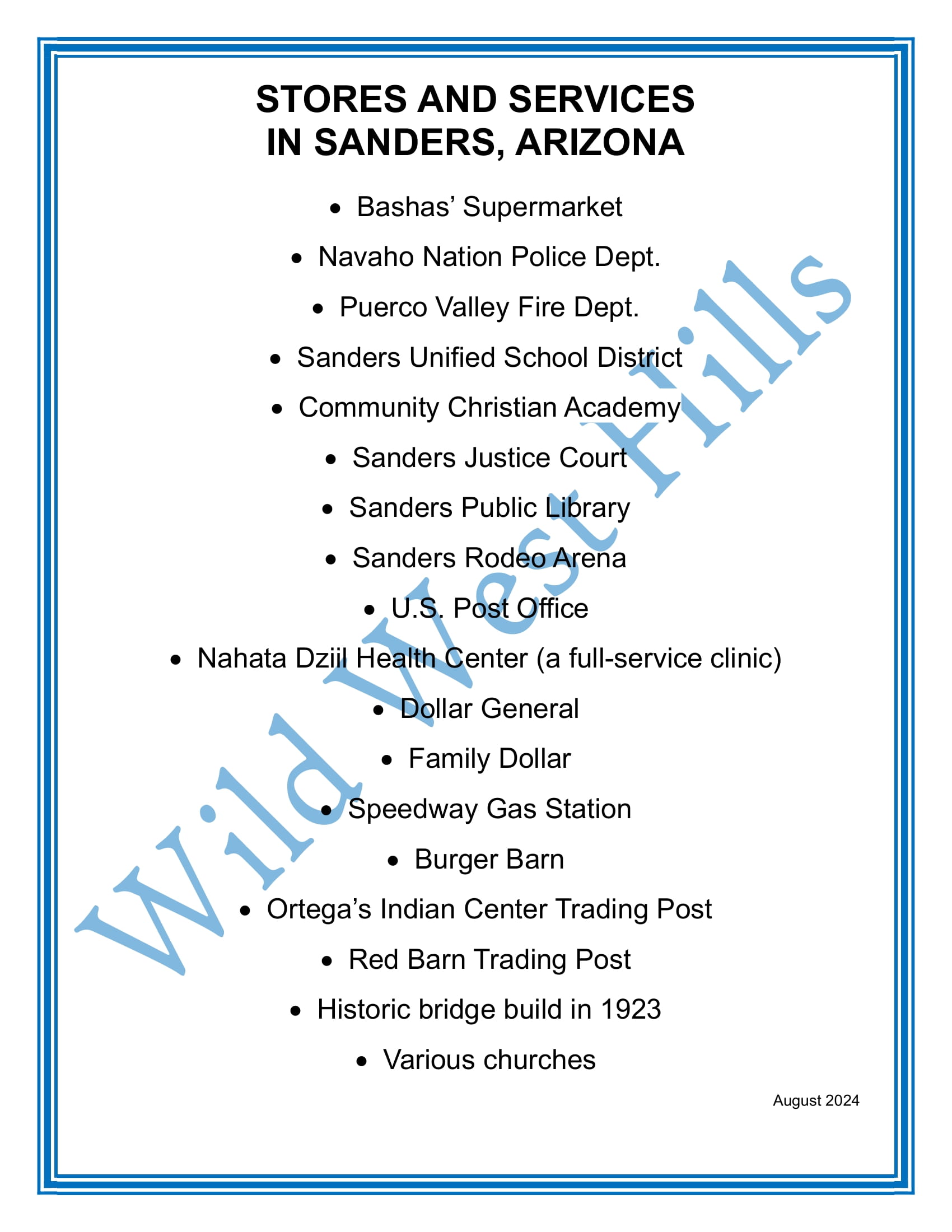 | Sewage | Septic System | Available | No city sewer. Septic tank needed. Apache Co. Environmental Services, (928) 337-7607 |