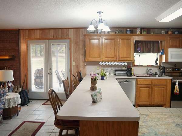 Enjoy peaceful country living in this inviting 3-bedroom, 2-bath home on 6.2 beautiful acres in Hughes Springs. Built in 2001 and thoughtfully maintained, this 1,800 sq. ft. home features a comfortable open layout with tile floors in the main living areas and cozy carpeted bedrooms. The spacious eat-in kitchen offers plenty of cabinet space, an L-shaped counter with bar seating, and mostly newer appliances -- perfect for family meals or entertaining. The living room includes a fireplace insert for cozy evenings, while the primary suite stands out with double walk-in closets and a private bath. Outside, you'll find a large covered carport and concrete patio area ideal for gatherings or parking, plus a workshop with electricity for hobbies or storage. The property's natural beauty shines with open grassy fields, mature pine trees, and a tranquil pond, with the backyard backing up to a wooded area. If you're looking for space, comfort, and a true country setting just minutes from town, this property is ready to welcome your family home.