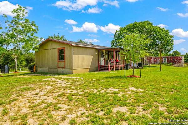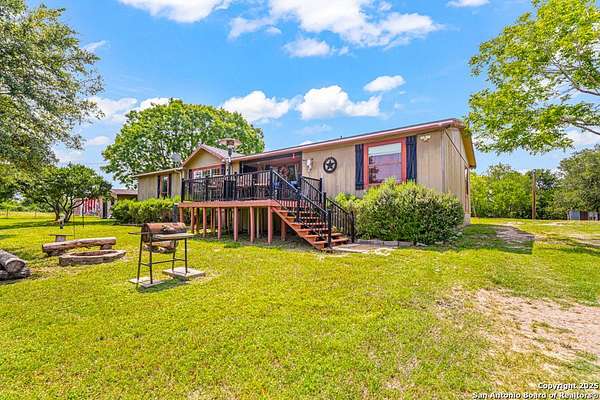 Escape to your own slice of Texas paradise with this rare opportunity to own 20 unrestricted acres on a beautiful riverfront ranch with direct access to the San Antonio River! This well-kept 3-bedroom, 2-bath home is surrounded by mature trees and wide-open space, offering the perfect setting for peaceful country living. Enjoy quiet mornings and tranquil evenings from the front porch while watching the abundant wildlife pass through. Follow the hand-paved stone path down to the river's edge, where you can relax, take in the serene views, or fish for catfish and bass. Inside, the home features brand new flooring throughout, updated lighting, brand new energy-efficient windows, and new stainless appliances. A brand new water well and pump with a complete filtration system ensures fresh, reliable water. Deer feeder, security system, zero-turn mower, and game cameras are also included, adding both comfort and peace of mind. The property is also cross-fenced for cattle, making it ideal for agricultural use or livestock. ALL furniture and appliances convey, making this a turnkey opportunity ready for immediate enjoyment. The property carries an AG exemption and is ideally located between San Antonio and Corpus Christi, giving you the best of both city convenience and coastal charm. Whether you're seeking a private homestead or weekend retreat, this riverfront gem offers unmatched peace, comfort, and potential. Schedule your showing today!