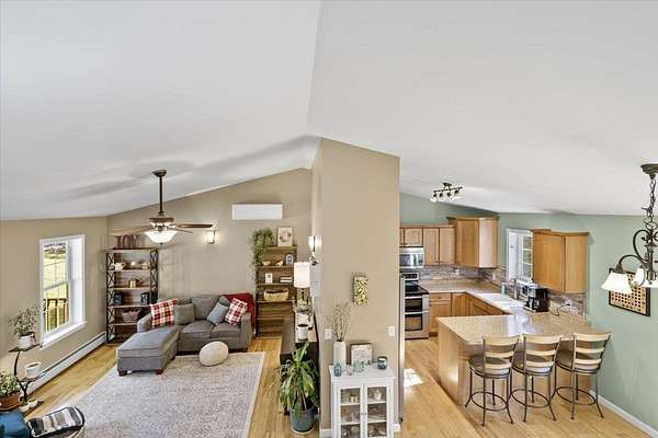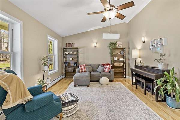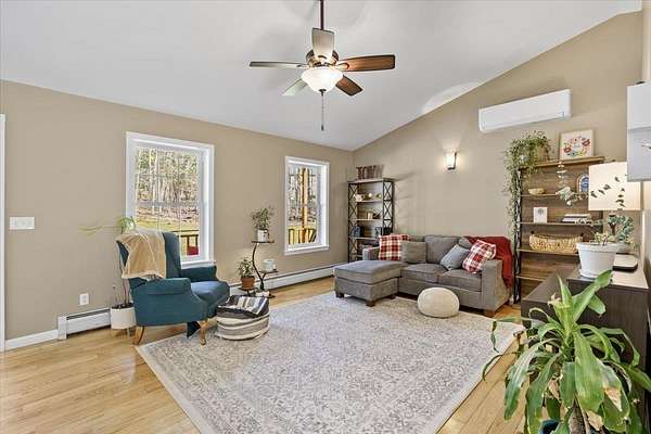 Escape to comfort, space, and privacy with this beautifully maintained 3-bedroom, 2-bath home set on 4.5 serene acres. Designed with an open floor plan and soaring cathedral ceilings, this home offers a bright, airy feel perfect for both everyday living and entertaining.The kitchen and dining area flow seamlessly together, featuring a convenient slider that opens to a spacious back deck—ideal for morning coffee or evening gatherings surrounded by nature. Stay comfortable year-round with a mini-split system for cooling, Nest thermostats for efficiency and ceiling fans in every bedroom. The spacious primary bedroom features a private en-suite bath and a generous walk-in closet, offering both comfort and convenience.The family room adds valuable living space, featuring a wood stove—ideal for cozy nights. A versatile den with a Murphy bed offers the perfect space for guests and even another room for a home office. Outdoors, enjoy your own private retreat with established wooded trails, a peaceful yard, and a welcoming campfire ring. For outdoor enthusiasts, the VAST trail runs just beyond the property boundary, offering direct access to adventure right from your backyard. And despite the tranquil country setting, the home features a paved driveway for added convenience. This full-time residence delivers the perfect blend of comfort, functionality, and natural beauty! Showings Start Tuesday April 21st. Open House Saturday 25th from 1-3pm.
