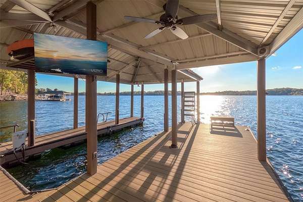 Waterfront living at its finest! This .74-acre lot offers 175 feet of rip-rap shoreline with sweeping main-channel views on Lake Keowee. The gentle slope is ideal for your future lake home, with sunsets that will stop you in your tracks and a hint of mountain scenery in the distance. You will enjoy a covered dock with a boat lift, Bluetooth speakers, two stow-and-go kayak racks, and a drop-down bench that practically demands you sit down and watch the sun disappear behind the water. One of the last remaining lake lots in this prestigious Waterford Pointe Community. Waterford Pointe residents enjoy a waterfront clubhouse, swimming pool, playground, and lighted tennis and pickleball courts. A quick drive puts you in downtown Seneca or at Clemson University. Lake days, game days, and sunsets are waiting. Secure this rare opportunity while you can.