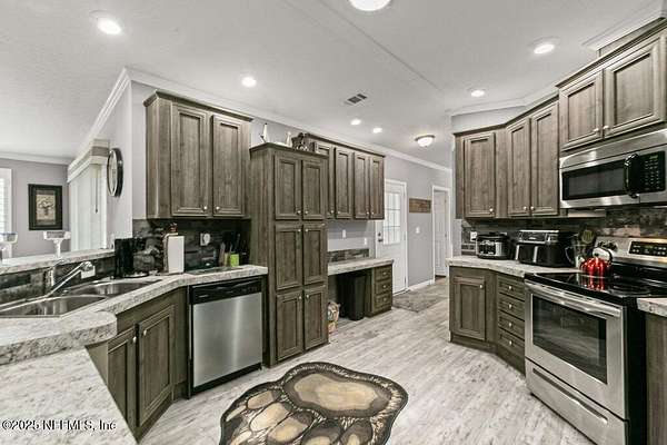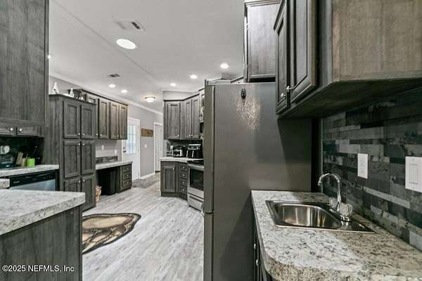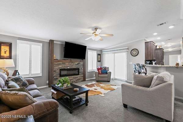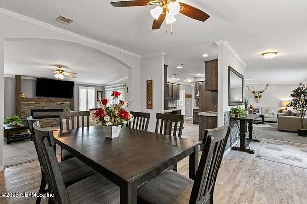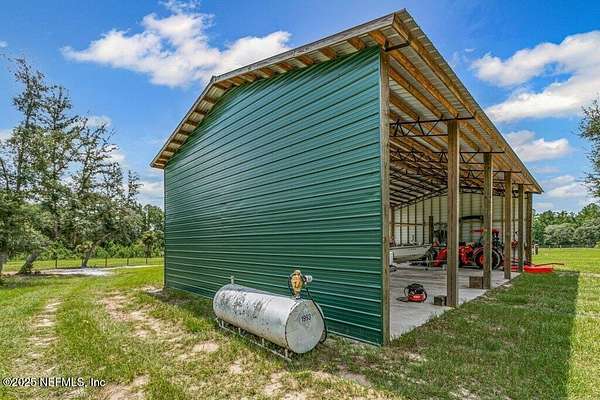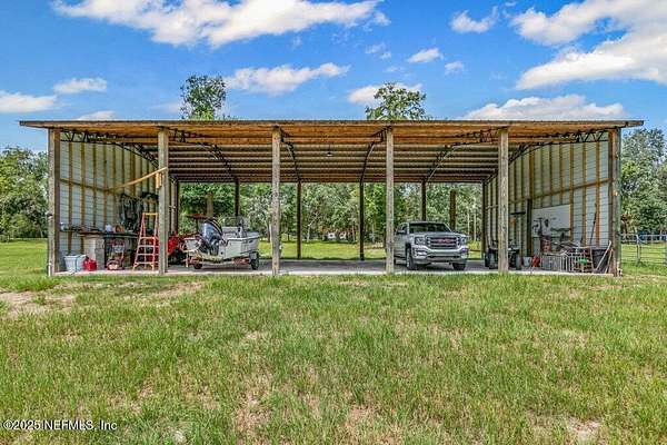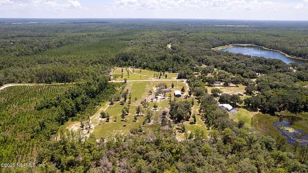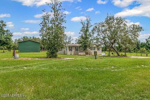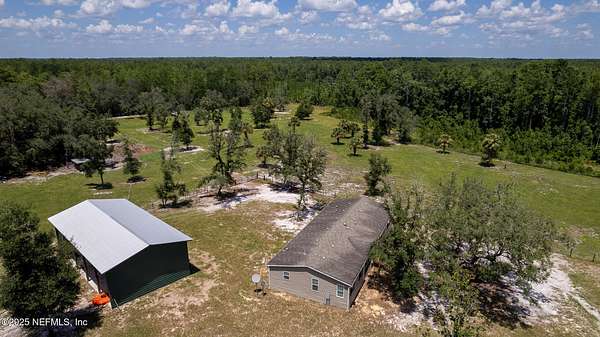 This 17+/- acre fenced and cross-fenced property offers the ideal setup for a functional, comfortable homestead lifestyle. Located just approximately 0.1 miles off the paved road on a quiet private road, you'll enjoy peaceful seclusion without sacrificing easy access. 10.1+/- acres is located North of Little Orange Creek Road and 7.06+/- acres is located South of Little Orange Creek Road. Buyer may be able to create two individual parcels but would need to confirm with Putnam County Planning and Zoning. Built in 2021, the upgraded manufactured home features quality finishes like sheetrock walls, giving it a more refined and spacious feel than standard models. The 3-bedroom, 2-bathroom split floor plan includes a massive owner's suite with an oversized bathroom, plus multiple living areas including a family room, a separate den, and a spacious dining area-perfect for everyday meals and gatherings. The covered back porch is already wired and plumbed for an outdoor kitchen and TV, making it a great spot for cookouts or relaxing evenings. The land is well-equipped for a working homestead, with separate paddocks for horses, cows, and goats, along with a hog pen and chicken coops. A sturdy pole barn with enclosed sides and a concrete slab provides excellent storage for boats, ATVs, or campers. While the area around the home is cleared and seeded for pasture, portions of the property have been intentionally left wooded to preserve natural habitat and attract wildlifeideal for hunting or simply enjoying nature. Conveniently located approximately 35 minutes to Palatka, 45 minutes to Gainesville, and just over an hour to Ocala, this property offers the perfect balance of freedom, functionality, and comfort.