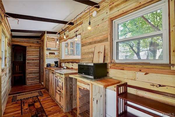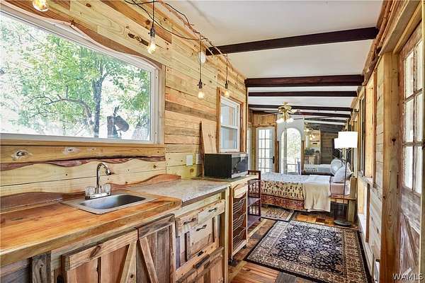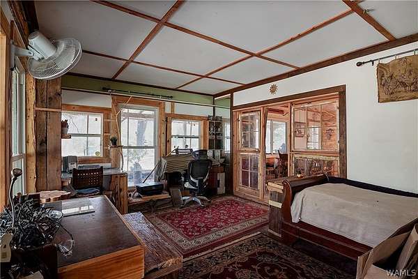 Secluded 65 ACRE rural property in Fayette County featuring a 2BR/1BA main home plus sunroom/workspace connected by breezeway to a 1BR/1BA studio with its own entrance. Suggested uses are guest suite, rental, home office, or multi-generational living. Property includes spring and creek access at separate entry points, established fruit and nut trees, raised garden beds, screened porches. Wood floors, large tiled pantry/laundry, wood-burning stove, cisterns, covered tool storage, two carports, fenced yard, a well, and trails throughout the land. County-maintained dirt road provides privacy with access to utilities. Long growing season supports extensive planting. Opportunity for self-sufficiency, flexible living, or rural retreat use.