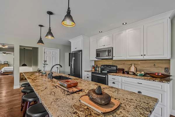 Experience the beauty of Lake Malone from this stunning custom-built home positioned on approximately 1.7+/- acres with 643 feet of pristine lake frontage. This exclusive offering includes the home and five contiguous waterfront lots (Lots 3-7, Heltsley Subdivision, Tax ID 001-08-00-003-00). Designed to showcase the lake from every angle, the home features nearly 100 linear feet of glass across the main living area, dining room, and primary suite. Enjoy breathtaking views, rich natural light, and an effortless connection to the outdoors. Interior finishes include solid wood Amish cabinetry with tongue-and-groove drawers, leathered granite countertops, chocolate Schrock sinks, and a custom stone propane fireplace with automatic temperature control. The 12x14 western cedar porch provides the perfect setting to relax and take in sunsets over the water. The gourmet kitchen and large walk-in pantry flow into the open dining area, ideal for entertaining. The primary suite offers panoramic lake views and a spa-quality bath complete with walk-in stone shower, jetted tub, dual vanities, and a large walk-in closet. Downstairs features two bedrooms with potential for a third, a rebar-reinforced safe-room bath, an out-of-season closet, and full under-stair storage. The home's 2x6 construction, instant hot water, and 3-zone heating and cooling system create remarkable efficiency, keeping utility costs typically under $100 per month. Custom 6/12 stairs lead to a private dock where you'll pass a natural cave and seasonal waterfalls on the way to the water. A 2015 22' pontoon boat can convey with the sale. Note: This offering does not include the garage/shop building. For the full 10.5+/- acre offering with shop and additional acreage, see MLS #25505989. Short-term rentals permitted. Every detail of this home and setting reflects exceptional craftsmanship and the tranquility of true lakefront living.