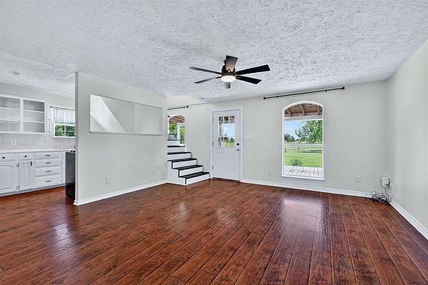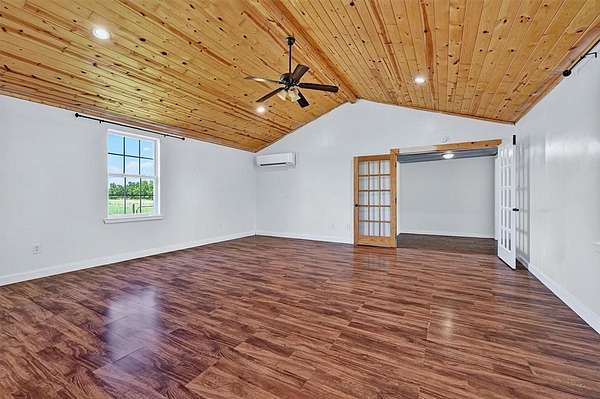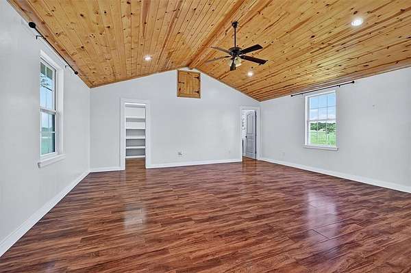 Step onto the large front porch, perfect for morning coffee or evening sunsets. The interior welcomes you with warm, charming wood floors and an open-concept layout, creating an inviting and airy living space. Natural light floods the home, accentuating the cozy yet spacious feel. A loft area offers additional living or sleeping space -- ideal for guests, a home office, or a creative studio. The land is a true highlight -- fenced and cross-fenced, it's perfectly suited with a small shed for a variety of animals including horses, cows, goats, and more. A pond enhances the property, providing a peaceful view and a valuable water source for livestock. Whether you're an equestrian, hobby farmer, or simply someone who enjoys wide-open space, this land delivers. RV hookup and boat parking available.
