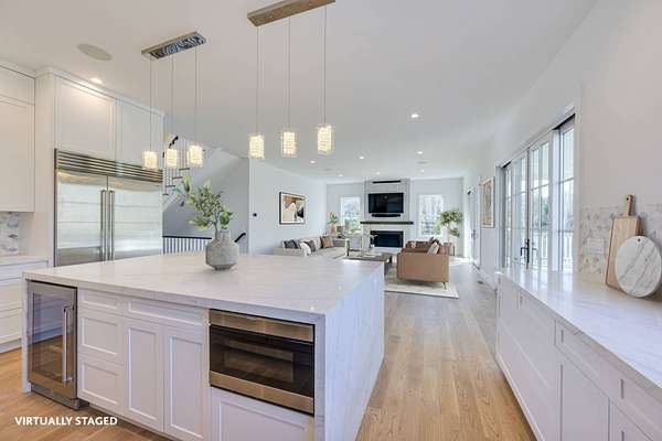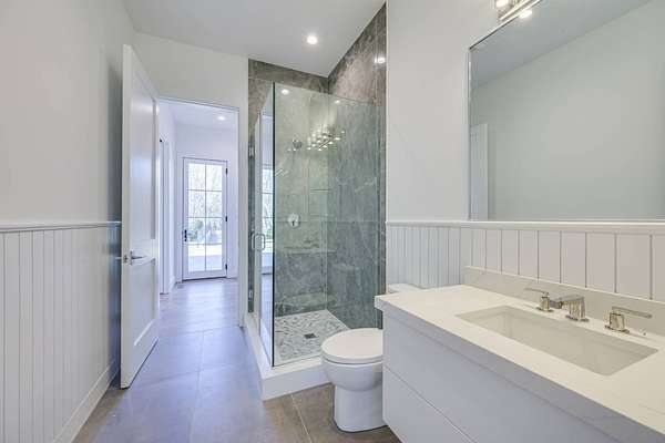 Now complete and move-in ready, this newly built Southampton home blends timeless design with top-quality construction. Set on just under 2 acres, the residence is surrounded by preserved land, world-class golf courses, and bay beaches, minutes from Southampton Village with an easy back-and-forth commute from the city. Thoughtfully laid out, the home features all en-suite bedrooms, including a first-floor junior suite, and an open-concept main living space that flows seamlessly from kitchen to dining to living room. High-end materials, appliances, and mechanical systems are found throughout. Outdoor living is just as well considered, with a covered mahogany porch overlooking the backyard, and bluestone patio that connects the home to the heated saltwater pool, hot tub, and Har-Tru tennis court. The second-floor primary suite includes a private deck with sweeping views, two walk-in closets, and a large bath with soaking tub and glass-enclosed shower. Additional features include a two-car garage and first-floor laundry. Built by Horizon Homes with over 30 years of experience, known for their exceptional craftsmanship and attention to detail, this property is an ideal year-round or seasonal escape.