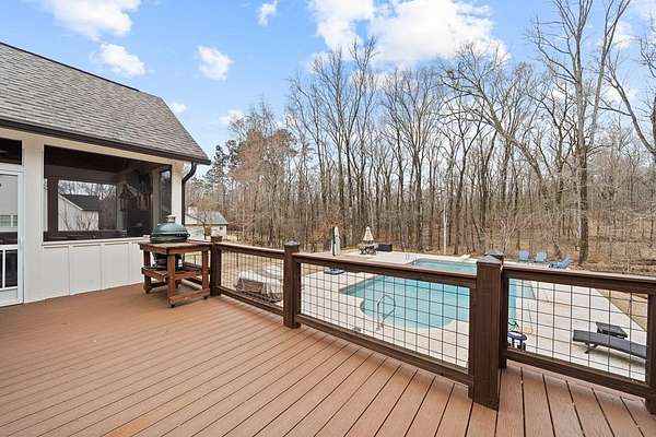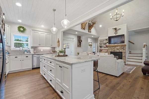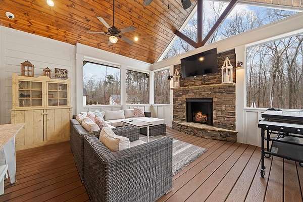 Welcome home to this stunning 4-bedroom, 3 bath residence perfectly situated in a spacious 1.5 acre lot. Designed for both everyday comfort and exceptional entertaining, this one checks all the boxes. Step inside to discover beautiful flooring, inviting open concept, the kitchen and living room are ideal for gatherings. The master suite is what dreams are made of, featuring a spacious bedroom and a luxury bathroom designed for comfort and style. Upstairs offers fantastic space for kids, with a generous bonus(bed) room and additional two bedrooms for play, studying and relaxing. Car enthusiasts and hobbyists will love the combination of 3 car attached and 2 car detached garages, offering abundant storage and workplace. Want a private oasis? The inground pool, screened-in back porch with fireplace, and large grilling deck is the perfect relaxing and entertaining area.