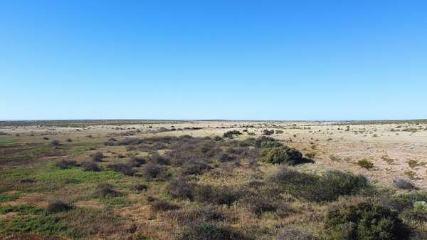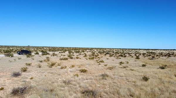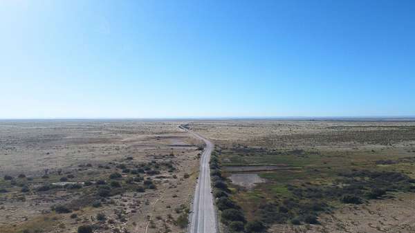 This 4.53-acre parcel is located in a remote area of southeastern New Mexico, approximately four minutes from Hope and about twenty minutes from Artesia. County Road 8 (Santa Road) runs through the center of the property, creating two distinct sections with direct access on both sides of the road. The land is mostly flat, with the east side being more open and lightly vegetated, while the west side contains additional desert vegetation and a gentle slope.