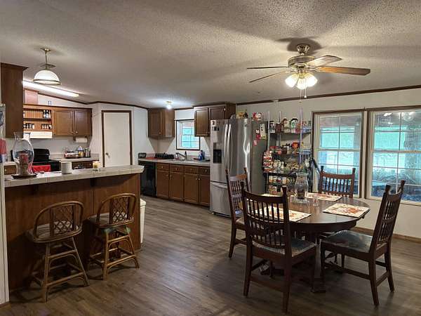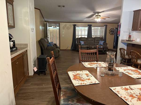 Est $1,629/moCountry living at its best! Over 3,000 sq ft on 10 acres with deer, turkey & a stocked pond. 2002 Fleetwood MH featuring 4BR/2BA, large open kitchen w/ ample cabinets, open dining, living room w/ stone fireplace, plus separate den/game room. Spacious primary suite w/ walk-in closet, double vanity, walk-in shower & garden tub. 12x20 sunroom, 12x20 laundry/storage & 24x38 carport, new closed in front porch. Attached garage/workshop. ~5-ton Carrier AC approx 6 yrs old~ Water softener/iron filter~ Metal roof approx 5 yrs old. Sunroom & patio. Quiet country setting-schedule your showing today!