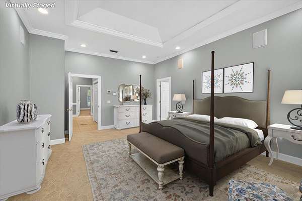 - Central Vacuum, Entrance Foyer, Garden Tub Roman Tub, High Ceilings, Pantry, Split Bedrooms, Stall Shower, Tray Ceilings, Vaulted Ceilings, Walk In Closets, Window Treatments