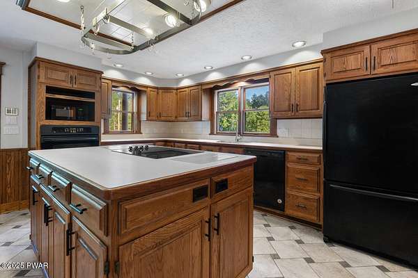 - Ceiling Fan(s), Eat-In Kitchen, Kitchen Island, Natural Woodwork, Recessed Lighting