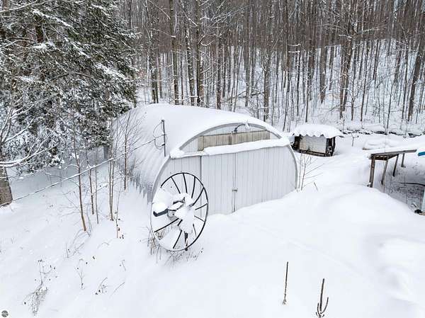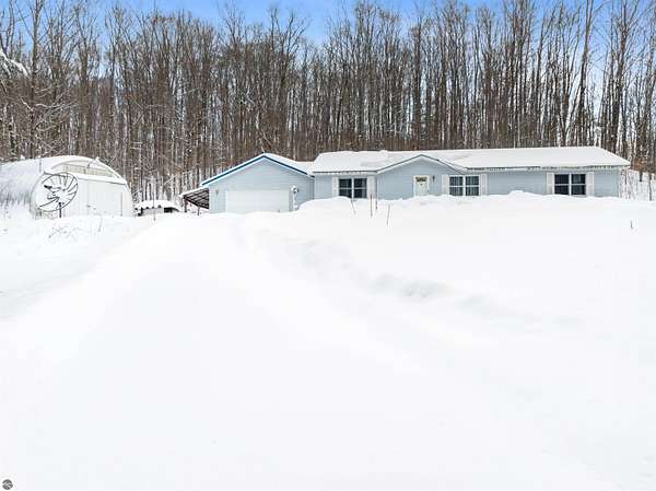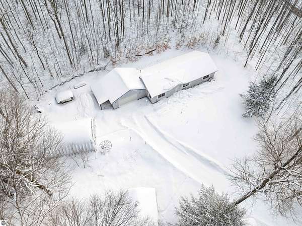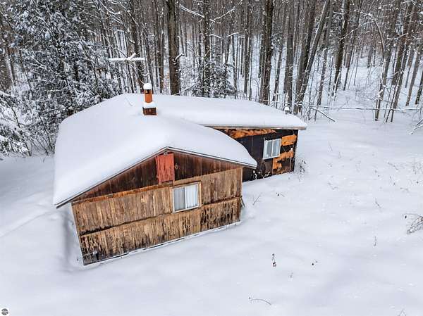 Private Northern Michigan dream property. Imagine acquiring two parcels comprised of 46 plus acres of a private realm where the air is crisp with a rolling mixed forest canopy. The nights are silent and the opportunities for discovery are boundless. Escape the demands of the everyday world and discover your own secluded sanctuary. This serene landscape is a blank canvas awaiting your vision, whether you dream of a private family compound, a secluded hunting haven, or a legacy estate where memories are etched into the wilderness. This original vintage structure, metal pole barn and a two bedroom, two bath ranch style dwelling provides a starting point, offering potential for warmth and shelter as you design your ultimate escape.