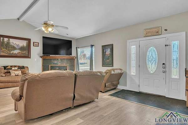 From Target drive north on 259, left past Sarterwhite Log homes on Mackey Rd, drive 1 mile. Left on Big Woods, driveway is first archway on the left.