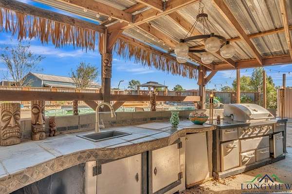 - Barn, Barn/Stable, Deck Covered, Fence, Gutter(s), Metal Outbuildings, Outside BBQ Grill, Patio Open, Pier & Deck, Pond, Pool, Storage Building, Storage Buildings, Work Shop