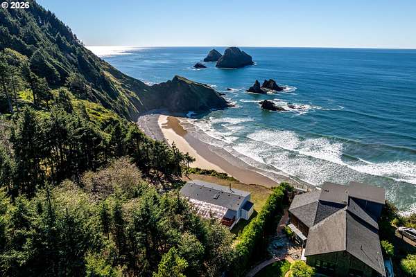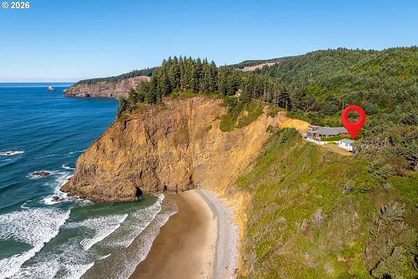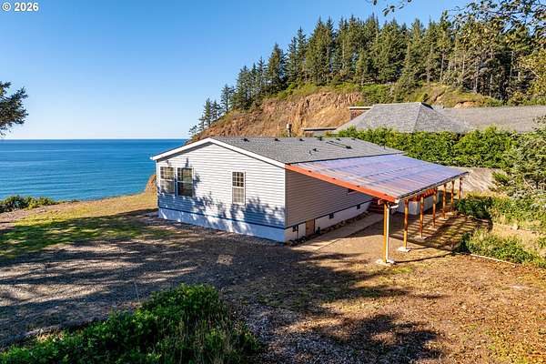 First time on the market EVER! This rare coastal retreat sits on 3.98 acres with private beach access-exclusively for owners, not open to the public. Enjoy breathtaking oceanfront views, privacy, and space to truly unwind. The property has seen extensive recent upgrades, including a new roof (2024), interior paint, carpet, skylight, select windows, and gutters, plus new insulation, metal ductwork, electrical panel, and exterior paint updates in 2025. A certified wood stove adds warmth and character. This partiallyl fenced property offers plenty of room for RV parking, boats, and multiple vehicles, making it perfect for both full-time living or a coastal getaway. A unique opportunity to own a private slice of the Oregon Coast with space, views, and exclusive beach access-properties like this rarely come available! Call for a showing today!