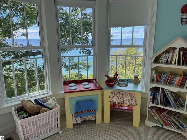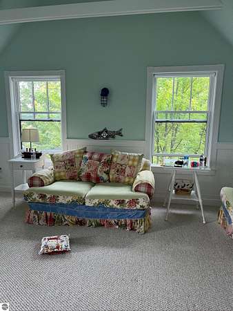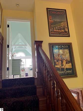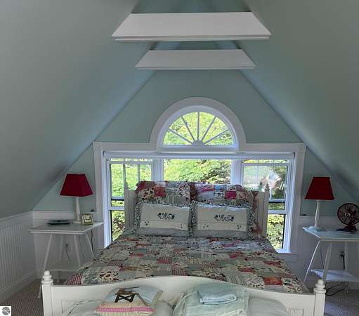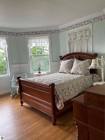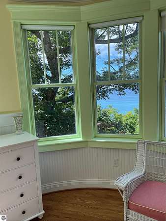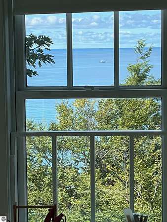 A large, 3 story, Victorian style home built in 2004 with 7 bedrooms, 4 & 1/2 baths, and approximately 5,000 sq. ft. of living space located about 2 miles north of Frankfort. The house is on a high bluff overlooking Lake Michigan. With 3 spacious levels of beautifully crafted wooden interiors, a large family can have its own private spaces or entertain large groups in the main level. The fully equipped kitchen has everything you need including a large walk in pantry. There is a large sunroom that catches the morning rays leading out to a full length deck. The huge master bedroom has a large bath with a jetted tub. A main floor laundry is just off the kitchen near the rear entrance. A hot water heating system is clean and quiet and located in the huge basement where there is lots of storage space, or room for a workshop, or room to create more living space, a game room, theater, wine cellar, etc. This home is accessible to the owners and their family in temperature-controlled comfort all year round. All of the listed dimensions are approximate, and there is currently a need for a new driveway access to the home, which must be approved by E,G.L.E. This one of a kind home is in a great location, right next to the CSA, just down the road from the Yacht Club, Point Betsie, and Crystal Downs Country Club, and only a five minute drive into town. Priced at $1,900,000.