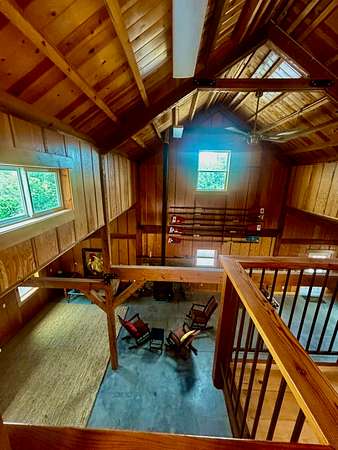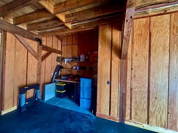 - Separate from the lodge, the Caretaker's House (2 bedrooms, 1 bath) operates on its own off-grid system, ensuring privacy and operational independence. The caretaker's compound includes a metal workshop, equipment sheds, parking, and a firewood processing yard to support the ranch's daily operations.