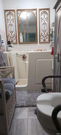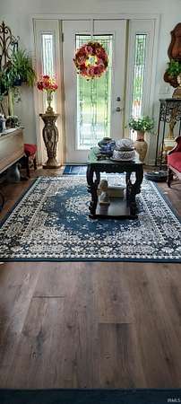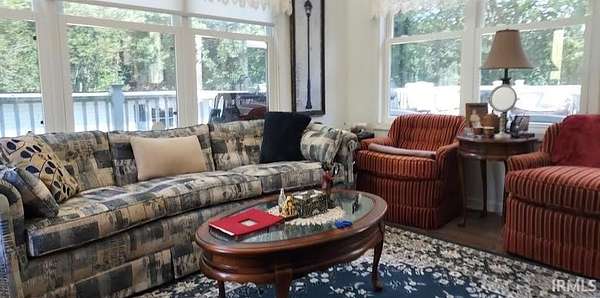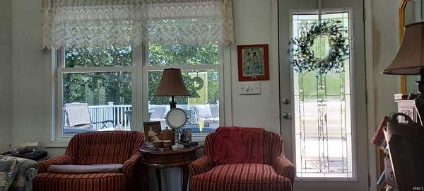 Woodburn Country Home in Rural Setting - Wooded acreage with country home in unique setting bordering the Maumee river. Approximately 2500 sq ft, 4.1 acres, remodeled 2 years ago. Landscaping consists of collector Hostas, Peonies, Hydrangea, Hibiscus, Red buds surrounding the home. Acreage includes 20'x40' building with concrete floor which would be ideal for hobbies, storage or even a chicken cook, etc. Gas heat/AC, septic system, 4' well, Kinetico water softener, Kinetico osmosis water purifier connected to ice maker and sink, 200 amp electric, Ring Security System. All main floor has new laminate flooring, new addition has custom shades and sun/privacy final on windows. Schools: East Allen County Woodlan elementary & high school. The approximate 2500 sq ft of living space includes 3 bedrooms, 3 full bathrooms, one with new jet tub, large kitchen with new cream cabinets, new Corian counter overlaps for bar stools. A southern exposure sun room opens into the kitchen with front door outside entrance providing plant enthusiasts use of their green thumb. The new addition features a sunny entrance foyer opening with a leaded glass door with side lights giving another possibility to use accessory greenery. Leading from the foyer into the formal living room is a hallway that leads to large master bedroom suite featuring a cathedral ceiling, ample windows covered in sun and privacy film, custom shades, and a leaded door leading to wrap around deck. The suite includes master bath with porcelain tile floor and a laundry room including Fisher Pical washer/dryer. A hallway lead to a large back sun room with cathedral ceiling, fan, 2 leaded door entrances to wrap around deck. Many possibilities to use a sun room, office, etc. Has sun and privacy window film and custom shades, and new laminate flooring. Adjacent to the sunroom is full bathroom entertaining a large jet tub with porcelain tile flooring and large storage cabinet. Spacious wraparound deck with railing, included ramp for handicap accessibility, perfect for large group settings. Upstairs: two bedrooms with carpeting and ceiling fans. There is an insulated attic space which if finished with paneling could be used as a place space, computer room or storage, etc.