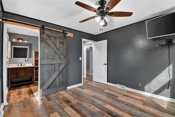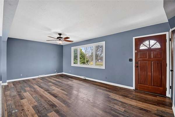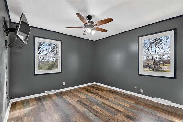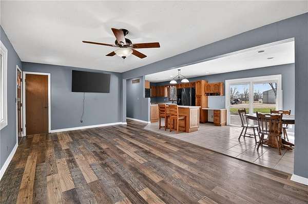 Beautiful home situated on 3.1 acres with an impressive 36x30 shop, offering the perfect blend of space, function, and updates! You'll love the open floor plan with the primary suite conveniently located on the main level. The home is filled with natural light and features new flooring, fresh paint, and updated windows throughout, giving it a clean, move-in ready feel. The spacious kitchen includes an island, abundant counter space, and beautiful cabinets. The dining area opens to the patio with sliding doors that have built-in blinds. Downstairs, you'll find two additional non-conforming rooms that offer great flexibility-perfect for bedrooms, a home office, workout space, or rec room. This home also offers major updates already completed, including a new HVAC system, new septic system, new flooring, and a brand new large patio-plus all appliances stay! Store your equipment or toys in the 36x30 shop, complete with 200 amp electrical, lighting, propane heat, a 6-inch concrete floor, and full insulation (including the garage door)-ideal for hobbies, business use, or extra storage. Located with easy access to I-49 and 291, you get the feel of country living with convenient access to the city. This one truly has it all-acreage, updates, and a versatile setup. Come take a look!