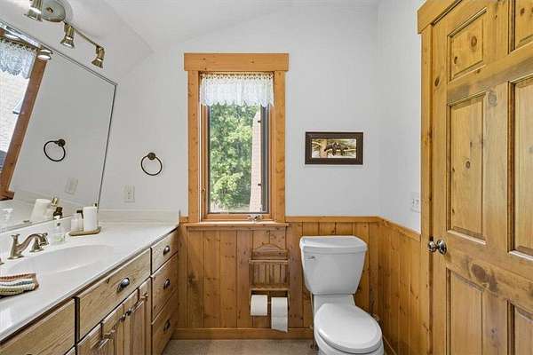 The beautifully crafted log and stone home serves as the main residence. As you step inside, you'll be welcomed by a bright and airy foyer/entryway filled with natural light. The heart of the home features an open-concept kitchen, dining, and living area. Additional highlights include a relaxing hot tub room located off the back of the house and a three-season porch equipped with an infrared sauna. The upper level offers two sizable bedrooms, a cozy sitting area, bathroom, and laundry facilities. A spacious office with a separate entrance is situated above the garage.