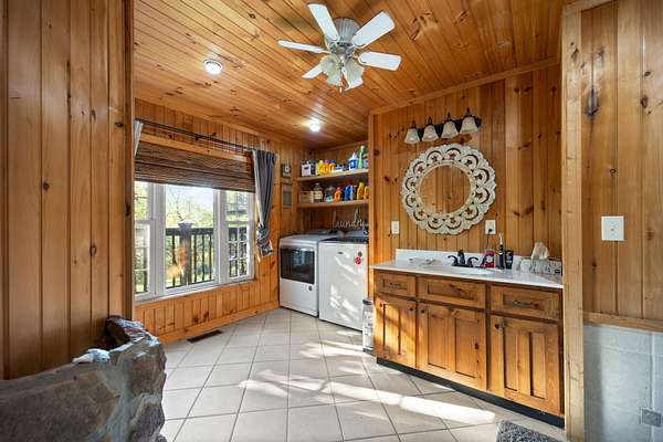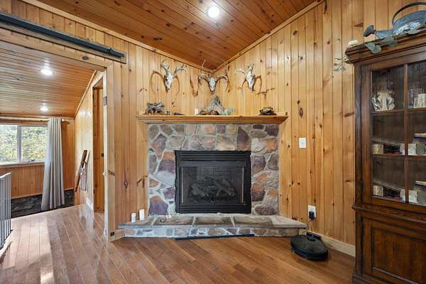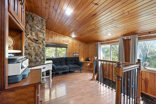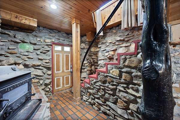 - Stone, Wood Siding