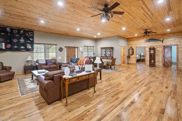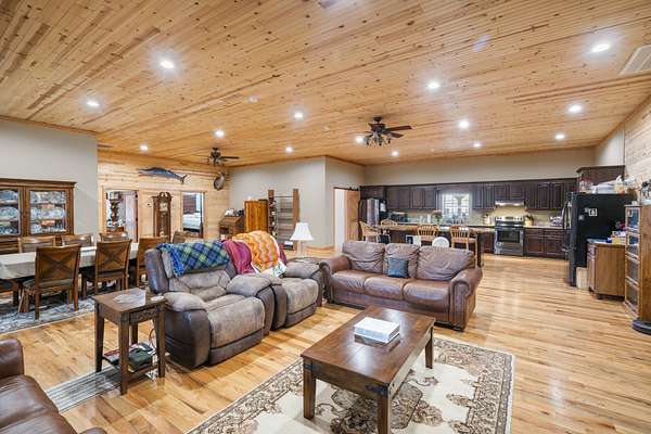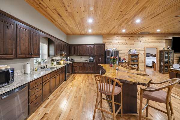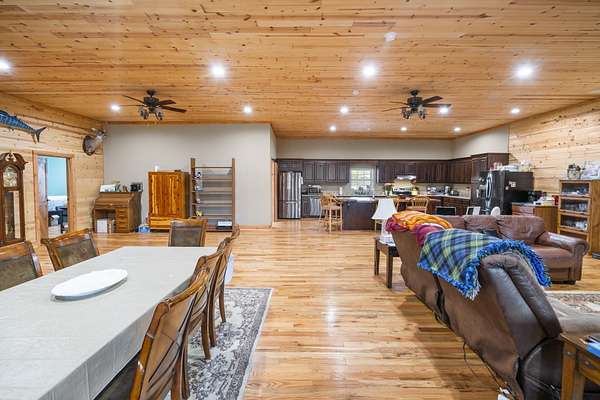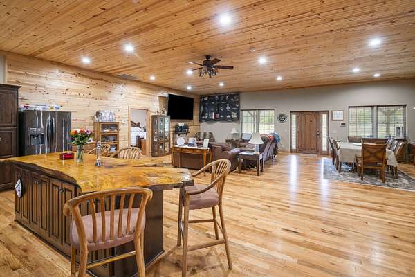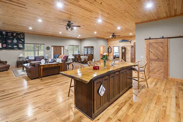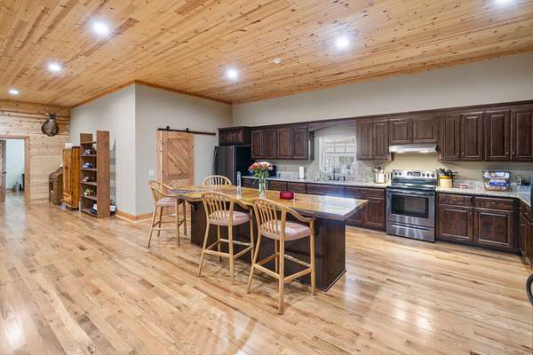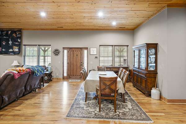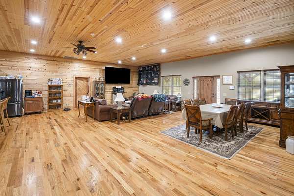 Escape to the tranquil charm of this rural retreat, set on a sprawling 23.87 acres just minutes from town. Picture yourself arriving home, greeted by a lush blend of about 4 wooded acres and approximately 20 acres of well-maintained pasture, where the options for a serene homestead or a vibrant, working farm await. Down the private drive, a spacious shop and additional outbuildings provide ample space for projects, hobbies, and storage, while an inviting open-air barn adds rustic charm. Step out to the semi-above ground pool and relax in the sunbathing spa, surrounded by artfully crafted hardscapes that bring elegance to your outdoor oasis. Inside, a welcoming open floor plan offers endless possibilities, with a showpiece kitchen at its heart--featuring a grand island crafted from a single, locally sourced slab that's as functional as it is striking. Whether you're dreaming of modern homesteading or peaceful rural living, this property invites you to create your own story here. Home and shop is Wheel Chair accessible and features a walk in tub along side the separate tile shower in primary bathroom!