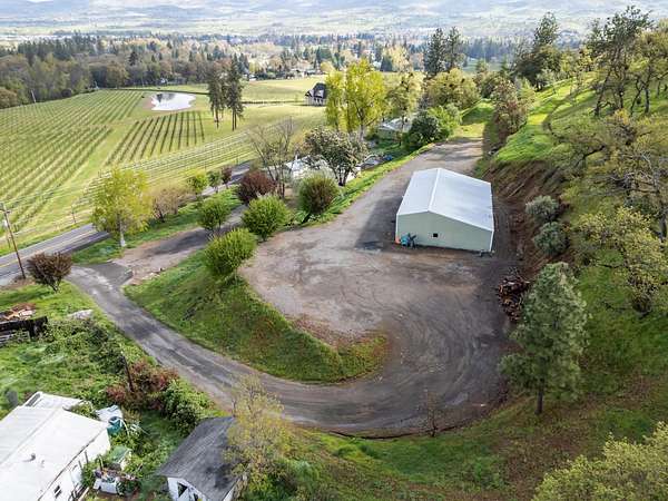 Rare 4.22 acre Talent property spanning 3 tax lots with RR 2.5 zoning, perfect for multi-generational living. Two existing residences preserve valuable homesites, offering potential for replacement homes and possible ADU potential with each, subject to buyer due diligence. With 4.3 acres of water rights and favorable zoning, the property is well suited for homesteading, gardens, orchards, small livestock, and rural living. Supporting improvements include a 520 SF shed and 2,160 SF shop with concrete floor, insulation, half bath, and great bones for future use. The shop and homes sit on level pads with beautiful views of the surrounding valley, vineyard, and surrounding mountains. The two homes, measuring 1,864 SF and 868 SF, require substantial renovation or replacement, but the land, water rights, existing infrastructure, and scenic setting combine to create exceptional potential in a highly desirable Talent location.