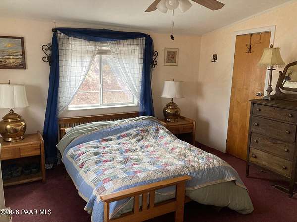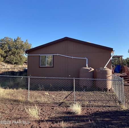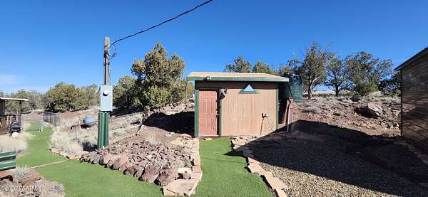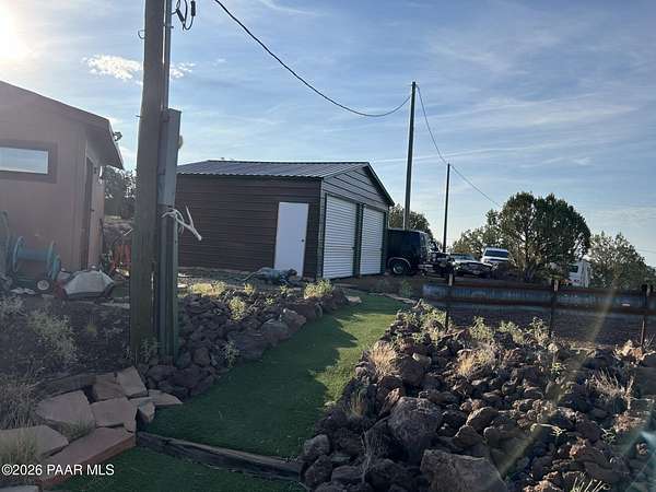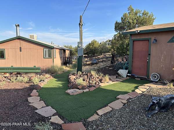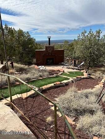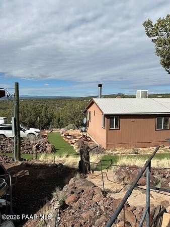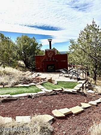 Experience the best of country living with a lovely three-bedroom, two-bathroom home and a thoughtfully designed outdoor space perfect for entertaining. This inviting property features a cozy wood-burning fireplace that creates a warm and welcoming atmosphere, along with a newly painted porch and turf pathways that add both charm and low-maintenance appeal. Located just outside the town of Ash Fork, the home offers easy access via a county-maintained road and reliable on-grid power. The outdoor spaces truly shine, with an outdoor kitchen featuring a built-in grill, smoker, and bar seating, along with plenty of room for a patio table and outdoor furniture along with spaces to gather around the fireplace and BBQ, unwind in the unique outdoor shower, enjoy a game of horseshoes at the horseshoe pit, or take in sweeping views from the upper viewing patio. A dedicated spa pad with electrical is already in place, ready for you to install your own spa. Two additional lower patios provide even more options for relaxing or entertaining. A brand-new 20' x 20' metal two-car garage offers secure parking and ample storage. Peaceful, scenic, and well-appointed, this property captures country living at its finest. Seller has a VA Assumable Loan - call for details.