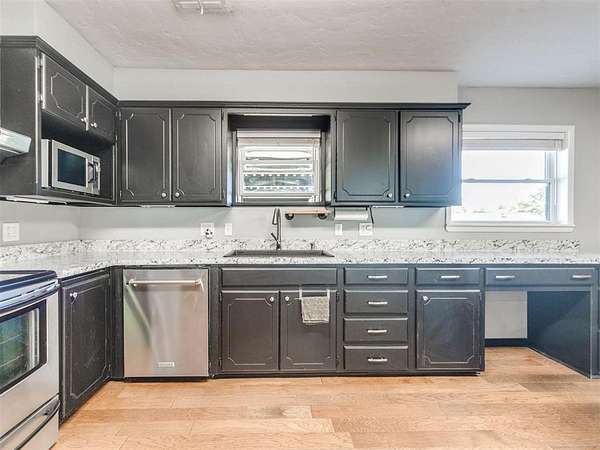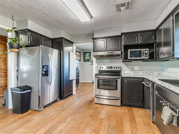 This newly updated and well maintained 3-bedroom, 1-bath home sits on just over 2 acres in the Bridge Creek School District. Inside you will find all new electrical, LED lighting, new doors and hardware, and built-ins in every bedroom closet. The kitchen features real hardwood floors, new Formica countertops, a new sink and faucet, a newly installed dishwasher, and new cabinet paint and hardware. PLUS the refrigerator (2024), kitchen table, and hutch all stay! The bathroom has been partially updated, and the living room and bedrooms feature new vinyl flooring that was installed in 2024. You'll also find tile flooring in the bathroom, all new windows (2022), new blinds (2024), and custom woodwork in one of the bedrooms and living room crafted by the owner himself. Outside, the updates continue with a new roof (2024), new gutters (2024), new septic lines and clean-out (2024), new fencing (2024), and fresh exterior paint on the home and select outbuildings (2025). The property includes an estimated 30x40 - 2 stall barn with a lean-to, a 12x15 tack room, a chicken coop with solar-powered fan and door, and a well house with all new lines and tank. The rock irrigation system, around the home, helps manage rainwater runoff, and a round pen built in 2024 is ready for your livestock or horses. There's even a shop pad already created and ready for concrete if you'd like to expand further. Other bonuses include a solar setup for the chicken coop, a 2024 termite treatment (no known activity), and NO HOA or Covenants and Restrictions. There are also two free range turkeys that the seller plans to leave. Both of which are friendly!
