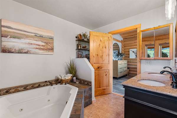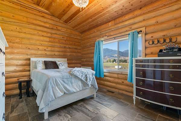 Newer log home with massive valley views in a central valley location. Nearly 13 irrigated, highly productive acres with a wheel line & excellent water rights, this log home features three levels of beautiful modern Montana living! Vaulted ceilings with a massive rock fireplace & a deck overlooking the valley with a view to knock your socks off! Main floor has a generous master suite with a walk in tile shower, jetted tub, walk in closet & private deck with a hot tub. Also on the main floor are two other bedrooms, a bathroom & laundry. Lower level is brand new, with two additional bedrooms, a full bathroom, a second laundry room & a large rec room. Room for the whole family! Convenient location, just off paved access. Large fenced yard with fruit trees, raspberries, raised garden beds, & a pole barn. Fenced and cross fenced with automatic waterers make this the perfect place for your horses or hobby ranch. Properties like this do not come available very often!