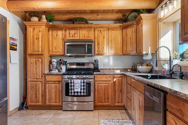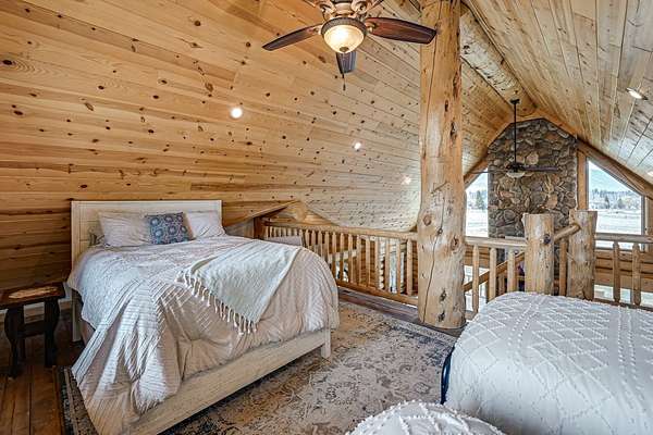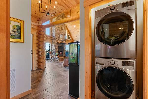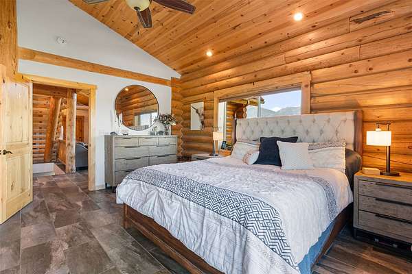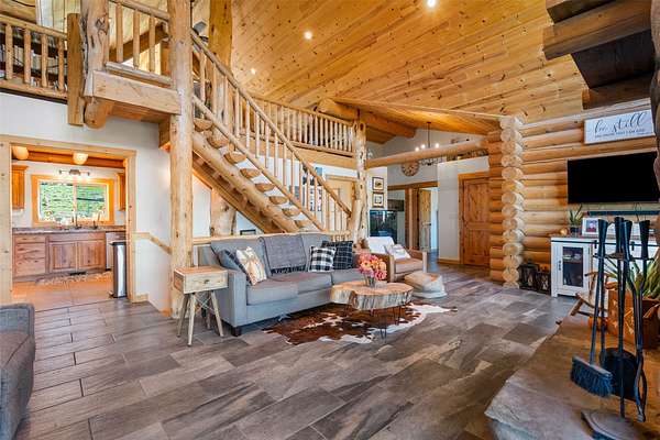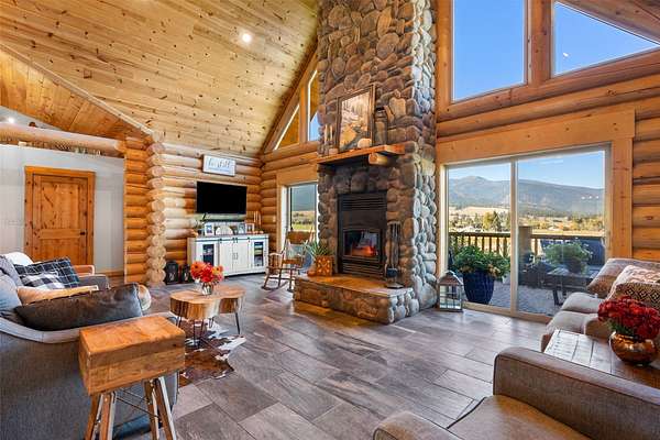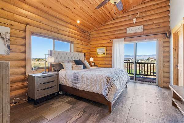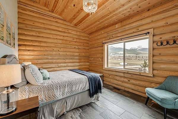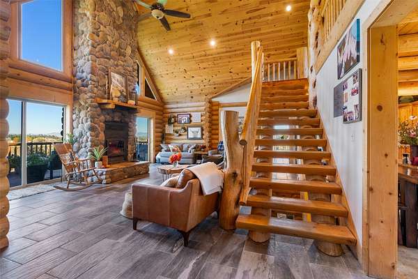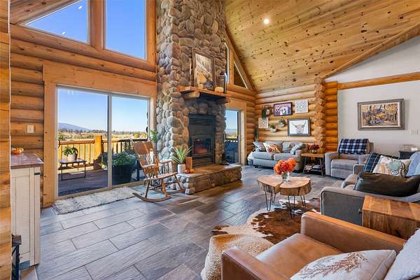 Experience the best of modern Montana living in this newer log home, perfectly situated in a central valley location with breathtaking panoramic views. Set on nearly 13 irrigated, highly productive acres with excellent water rights and a wheel line system, this property offers a rare combination of lifestyle and income potential. Inside, you'll find soaring vaulted ceilings and a stunning floor-to-ceiling rock fireplace that anchors the main living space. Step out onto the expansive deck and take in sweeping valley views that truly set this home apart. The main level features a spacious primary suite complete with a walk-in tile shower, jetted tub, walk-in closet, and private deck with a hot tub-your own personal retreat. Two additional bedrooms, a full bathroom, and a convenient laundry area complete the main floor. The newly finished lower level adds flexibility and value, offering two additional bedrooms, a full bathroom, a second laundry room, and a large recreation space-ideal for guests, multi-generational living, or separate rental use. Fully furnished, turnkey, and currently income-producing, this property is professionally managed, offering a truly hands-off investment opportunity. Its desirable location, spacious layout, and well-appointed amenities make it ideal for short-term vacation rentals, long-term leasing, or a flexible multi-use retreat. Designed to generate immediate rental income, it also provides the option to enjoy as a primary residence or second home. Outside, enjoy a large fenced yard with fruit trees, raspberry bushes, and raised garden beds. A pole barn, along with fenced and cross-fenced pastures equipped with automatic waterers, makes this property ideal for horses or a hobby ranch. With convenient access just off a paved road and a rare blend of comfort, acreage, and income potential, properties like this are hard to find and highly sought after.