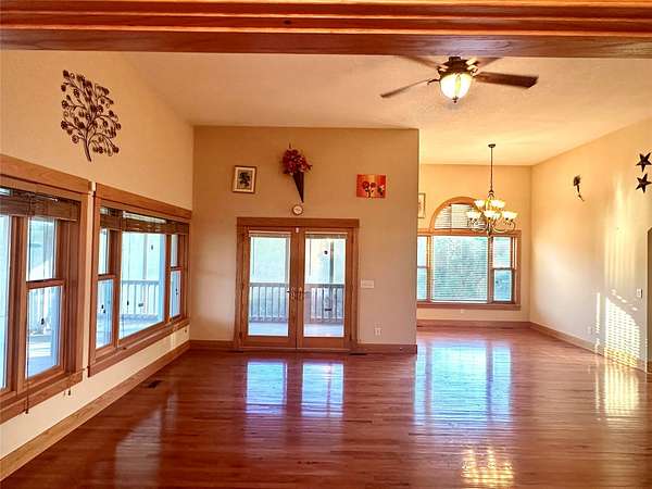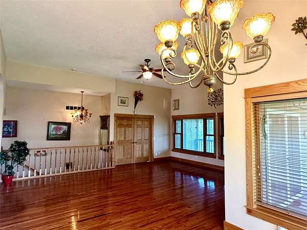MOTIVATED SELLER! Have you always wanted a house on a golf course, a lake close by, and on over 4.5 acres? This beautiful home is for you! This house has amazing finishes in every room, from the elegant chandeliers to the stunning floors. The large kitchen has plenty of counter space, an abundance of cabinets, sit up bar, and also a walk-in pantry. Any home chef's dream! It is open to a nice sitting area with gas fireplace, and plenty of windows for natural light. The dining area flows into the large living room, which has access to the screened in deck that overlooks the large yard. This would be an amazing house for entertaining. The AMAZING MASTER SUITE has his and her walk-in closets, separate sinks and a sitting area to do hair and makeup. There is also a large soaker tub and tiled walk-in shower. The lower level has a LARGE FAMILY ROOM with wood burning fireplace, wet bar with wine refrigerator, French doors out to the screened in patio which lead to the outside patio with fire pit. Did I mention this place would be GREAT FOR ENTERTAINING? There are also 2 bedrooms downstairs, along with a bathroom. An office, cedar closet, STORM SHELTER, and spare room finish out the lower level. This house may need a little love, but it is definitely priced accordingly, over $100,000 below assessed value. There are also many fruit trees for you to enjoy. This acreage also includes lot, .50 acres.