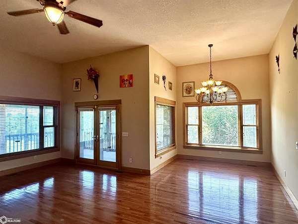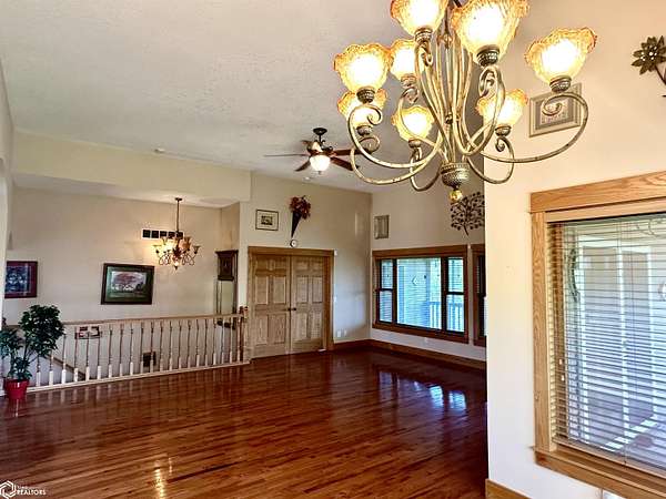 MOTIVATED SELLER! Have you always wanted a house on a golf course, a lake close by, and on over 4.5 acres? This beautiful home is for you! This house has amazing finishes in every room, from the elegant chandeliers to the stunning floors. The large kitchen has plenty of counter space, an abundance of cabinets, sit up bar, and also a walk-in pantry. Any home chef's dream! It is open to a nice sitting area with gas fireplace, and plenty of windows for natural light. The dining area flows into the large living room, which has access to the screened in deck that overlooks the large yard. This would be an amazing house for entertaining. The AMAZING MASTER SUITE has his and her walk-in closets, separate sinks and a sitting area to do hair and makeup. There is also a large soaker tub and tiled walk-in shower. The lower level has a LARGE FAMILY ROOM with wood burning fireplace, wet bar with wine refrigerator, French doors out to the screened in patio which lead to the outside patio with fire pit. Did I mention this place would be GREAT FOR ENTERTAINING? There are also 2 bedrooms downstairs, along with a bathroom. An office, cedar closet, STORM SHELTER, and spare room finish out the lower level. This house may need a little love, but it is definitely priced accordingly, $77,000 below assessed value. This property also has some fruit trees!