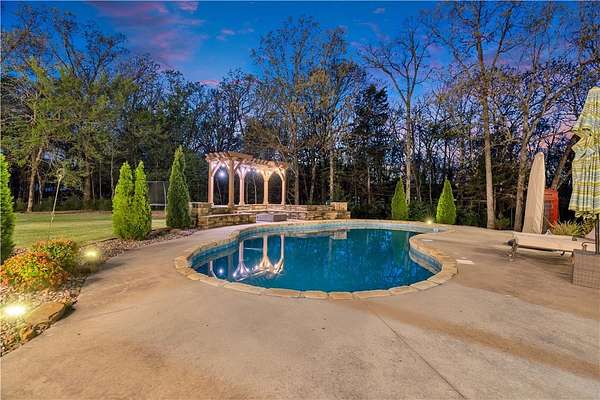 Truly one of a kind estate sitting on 5.69 acres in the middle of Fayetteville. You will find this home conveniently located but with an abundance of privacy just steps to the trail system. Major updates include roof, HVAC, pool lining and pump, carpet, paint. Many built in cabinets, work out room, dressing room, play area with ladder in closet to attic. Upstairs is perfect for guest, parents or teenagers. This home is like new.