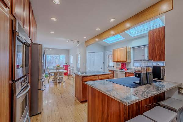 Stunning Country Retreat with Modern Comforts - 3 Bed, 3 Bath on 5 Acres Welcome to your dream home -- an extraordinary property that blends natural beauty, modern design, and eco-friendly living. This immaculate three-bedroom, three-bathroom residence offers the perfect balance of luxury and functionality across five peaceful acres. Interior Highlights Step inside to discover a beautifully appointed kitchen showcasing custom cabinetry with strong vertical ribbon striping, alternating light golden tones and rich reddish-brown bands -- a warm and elegant focal point for entertaining or daily living. All three full bathrooms feature stunning tile work throughout, offering both style and durability. The master suite presents a spa-like sanctuary, complete with a steam shower and a sunken tub, ideal for relaxation after a long day. Comfort and Efficiency Enjoy year-round comfort thanks to a closed-loop geothermal system providing efficient temperature control. Skylights throughout the home bathe each space in natural light, enhancing the open and airy feel. An 85-gallon electric water heater ensures ample hot water for the entire household, while a built-in security system adds peace of mind. Entertainment and Outdoor Living The spacious family room is perfect for gatherings and seamlessly opens to an inviting outdoor hot tub -- perfect for unwinding under the stars. Outside, the expansive five acres provide a serene backdrop for relaxation or recreation. A large barn with four automatic doors offers abundant space for storage, hobbies, or livestock. Don't miss this unique opportunity to own a home where luxury craftsmanship meets sustainable living -- an exceptional retreat with room to breathe and grow.
