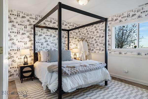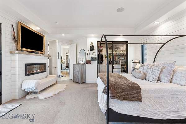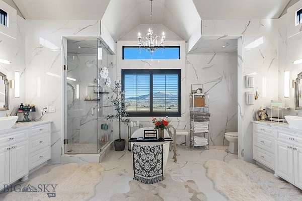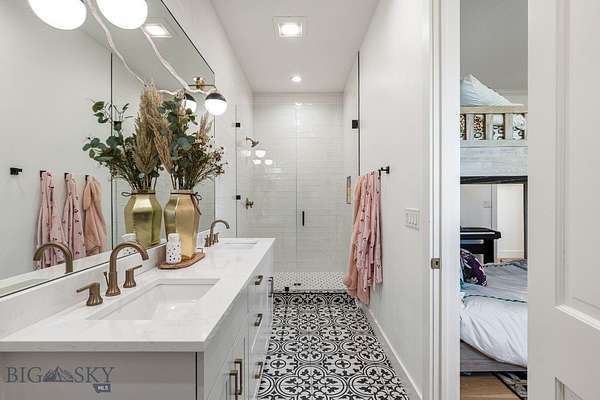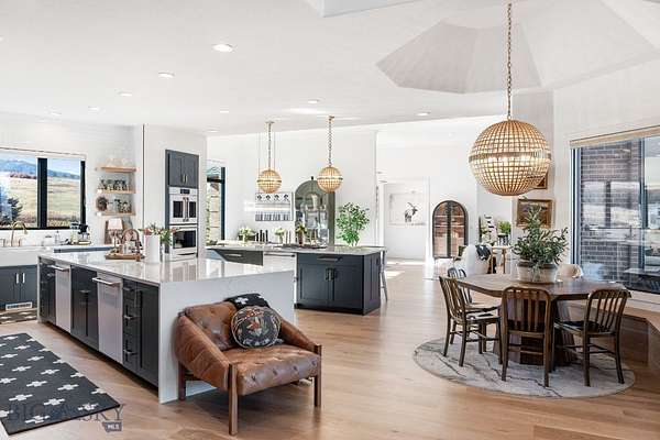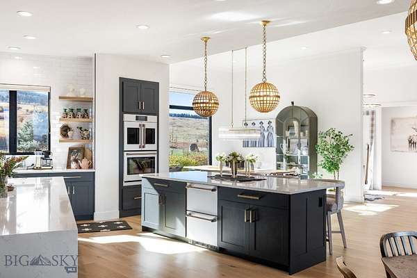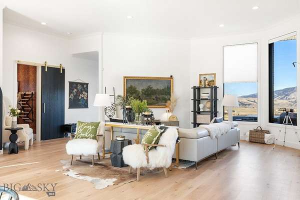 Welcome to 2375 Mount Ellis Lane, where modern mountain luxury meets Montana tranquility. Perched on 20 acres and backing directly to state land, this stunning 6,286-square-foot estate was originally built in 1995 and completely transformed between 2022-2023. Every inch has been thoughtfully redesigned with craftsmanship and comfort in mind. The home features 5 bedrooms, 5.5 bathrooms, and a bunk room, along with a chef's kitchen fitted with all-new appliances and designer finishes. Expansive living spaces capture panoramic views through brand-new windows and open seamlessly to the outdoors. Wellness and recreation are built into the design from the state-of-the-art gym with awe-inspiring mountain views to the indoor basketball court, sauna, and SwimEx pool. After a workout, unwind in the outdoor hot tub and soak in the beauty of the surrounding landscape. Additional upgrades include a new roof, new windows, garage doors, real wood flooring, exterior doors, appliances, landscaping, asphalt driveway, and an EV charging station. Offering unmatched privacy, luxury, and connection to nature all within minutes of downtown Bozeman this home truly embodies the best of Montana living.