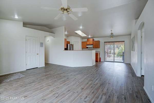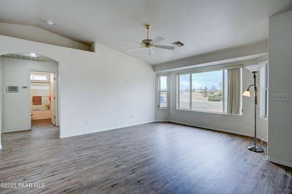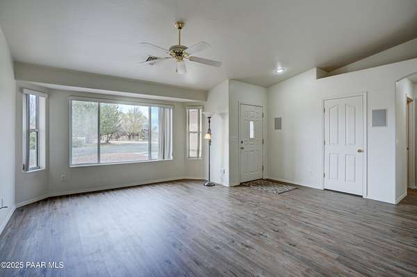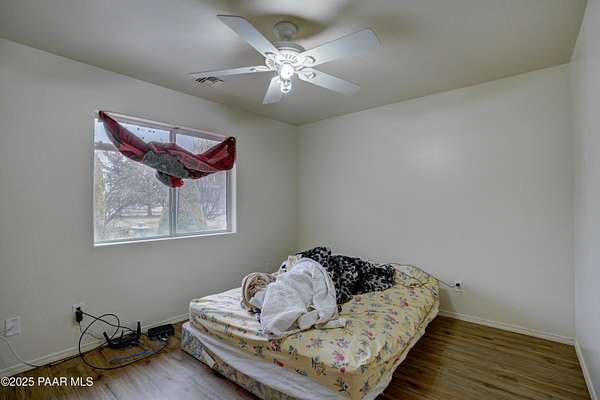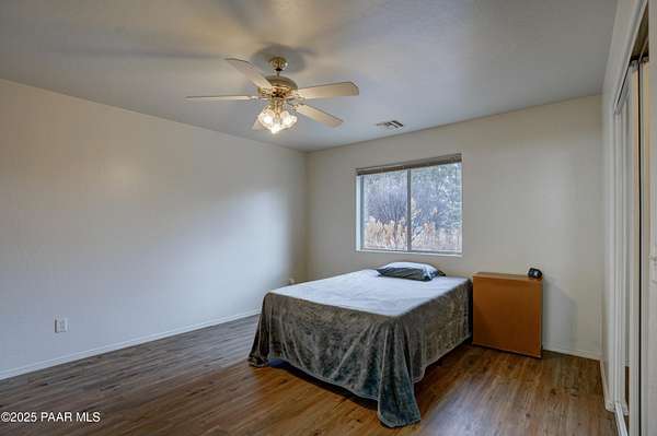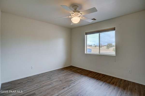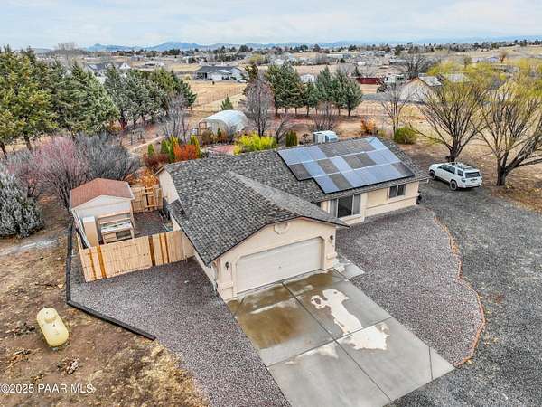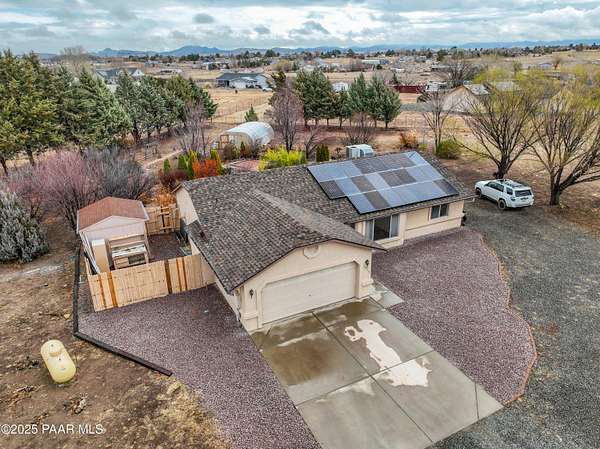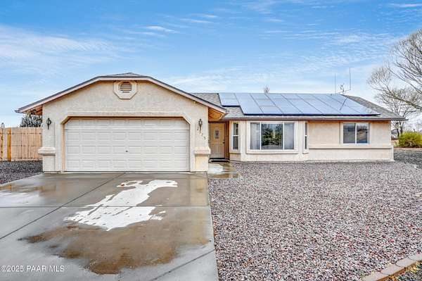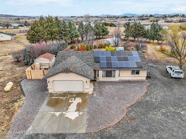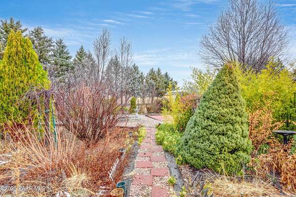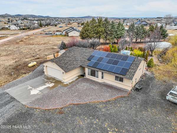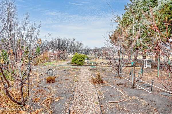 This Chino Valley home sits on 2.27 acres. There is plenty of room to add a workshop, RV Garage - or whatever you like. The split floorplan features 3 bedrooms, 2 bathrooms, beautiful new luxury vinyl floors throughout, an open kitchen for entertainment, a spacious master bedroom with walk-in closet, ceiling fans, and lots of storage. The backyard is beautiful with garden beds, lots of fruit trees, (apple, peach, persimmon, and plum), a greenhouse and a storage shed. If you love to garden this is the home for you! The roof is new as of May 2024 and there is fresh interior paint too.