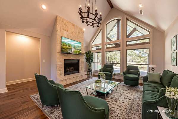 Experience the ultimate in luxury living at this exquisite Lindale estate. Nestled on a sprawling, wooded 8-acre lot, this magnificent property offers a serene escape with elegant features and modern comforts. Located in Stallion Lake Ranch, an exquisite equestrian neighborhood. Offering 4 bedrooms, 3.5 baths, and a 2-car garage, this property is an ideal haven for those who appreciate spacious, tranquil surroundings. Step inside to be greeted by sun-drenched interiors, where expansive windows frame breathtaking views of lush greenery. Thoughtfully updated, the living spaces exude coziness with abundant natural light and fine finishes. The gourmet kitchen is a chef's delight, equipped with high-end appliances, granite countertops, and custom cabinetry. Whether hosting intimate gatherings or extravagant dinners, this space is sure to impress. The primary suite is a sanctuary of comfort, featuring a luxurious spa-like bath with dual vanities, and a walk-in double shower. Three additional bedrooms offer ample space and versatility to accommodate guests or personal retreat areas. Venture outdoors to discover the epitome of Texas luxury—a sparkling pool beckons for refreshing swims, while the expansive covered patio invites leisurely afternoons or alfresco dining. The pond enhances the serene landscape, offering moments of reflection amidst nature's beauty. Crafted with enduring stone and brick, the structure seamlessly blends with the picturesque surroundings, ensuring timeless allure. This distinguished property in Lindale combines unmatched privacy with convenient access to I20. It's remarkable choice for those seeking both luxury and lifestyle in perfect harmony. This exceptional residence captures the essence of tranquil luxury living at its finest.