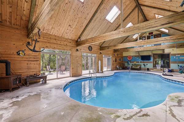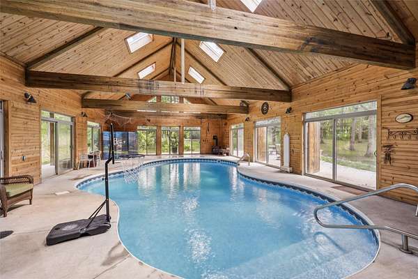 Escape to your own private paradise on 11 wooded, park-like acres just minutes from the metro! This one-of-a-kind estate features 5,500+ sq ft of finished space, a 1,500 sq ft indoor pool & sports area, plus a cozy 492 sq ft guest cabin. Main level boasts a spacious kitchen, master suite, office & loft. Lower level includes 2 BRs, 2 nonconforming bedrooms, 2nd kitchen & rec areas. Multiple garage setup: two 1-car detached, one 2-car detached & one 2-car attached, even a double-seater outhouse located 1/4 mile off pavement. Proven income as an Airbnb-live, host, or escape. Private showings available come see it today!