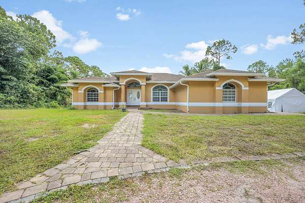 Est $6,412/moSpacious 3/2/2 CBS home on very private 5 acres in the beautiful equestrian community of Deer Run.Home is open, light and bright with vaulted ceilings and an open floor plan. The 5 acres has a dramatic palm tree-lined, long, circular driveway. The acreage is a blank slate for you to design and build out barns/paddocks/pool/etc. as needed. There's even an existing ''pad'' for a guest house or barn. Or leave it as it is and enjoy the peace, tranquility and privacy of your own 5-acre slice of Florida paradise!Don't miss this lowest priced home in Deer Run!